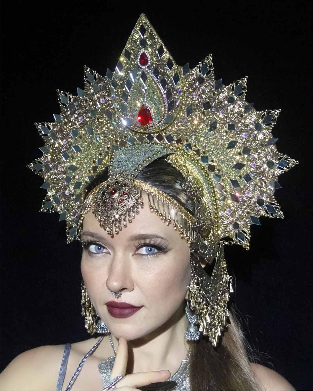 Fantasy Goddess Crown – Statement Headpiece for Tribal Fusion Dance, Stage, Festival & Performance