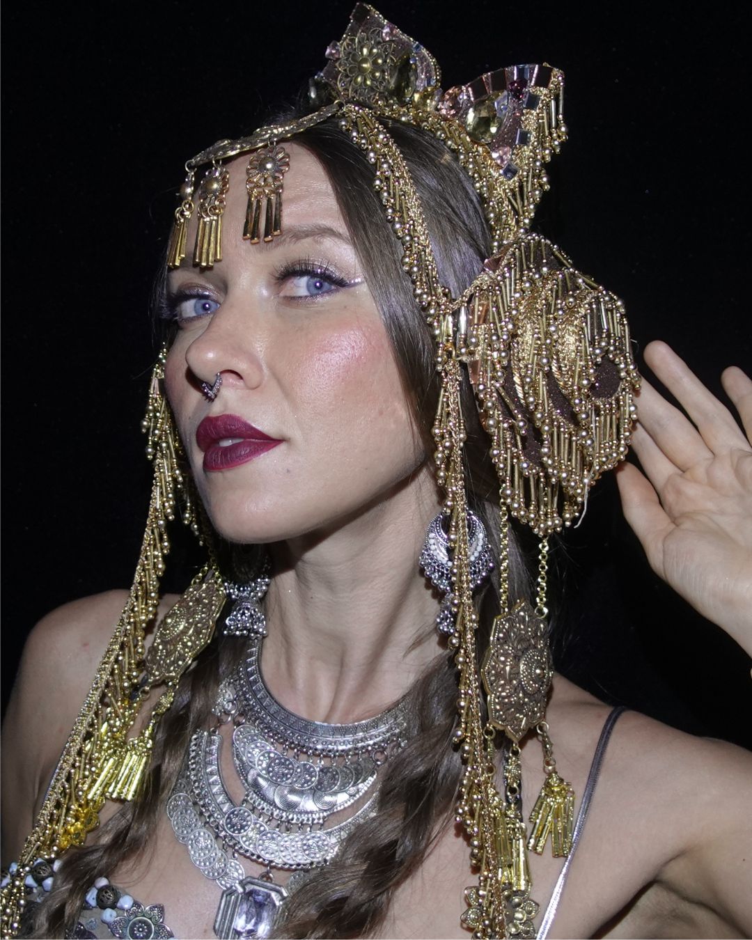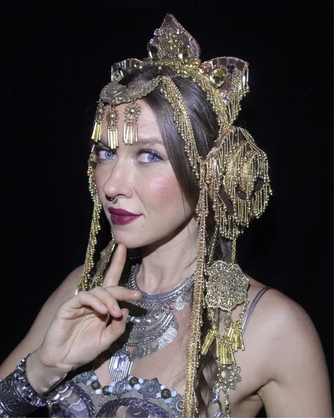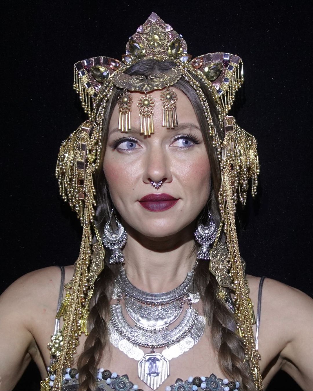 This crown creates a fabulous look for ethnic dances, tribal fusion dances, festivals, concerts, photo shoots, video shoots, and fire shows.